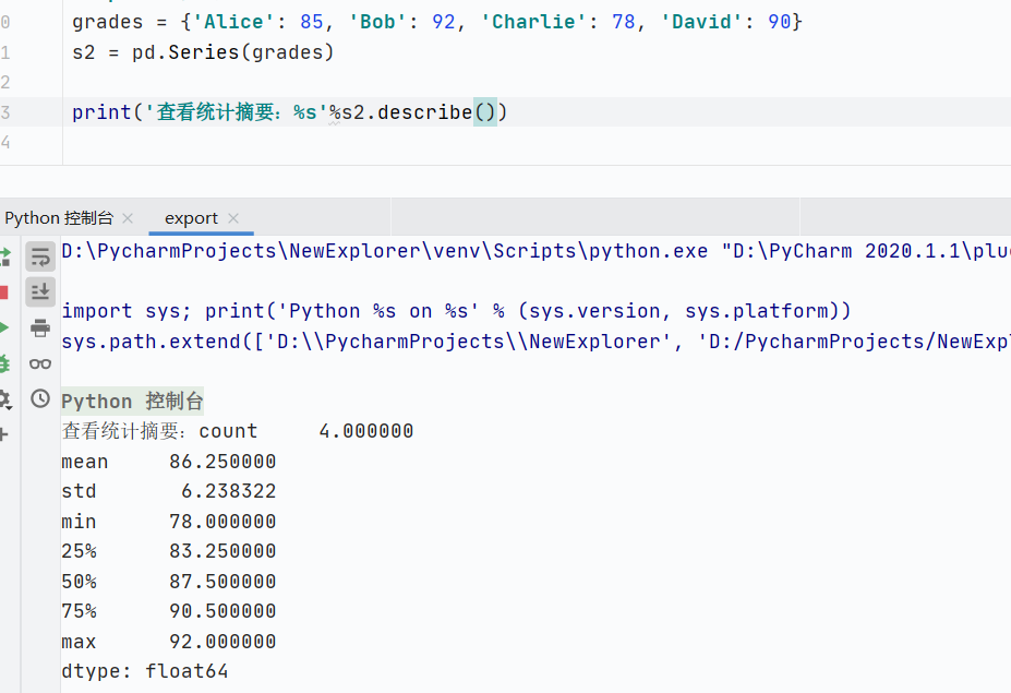 describe():统计摘要