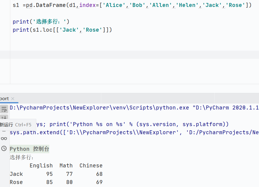 选择单行,返回Series