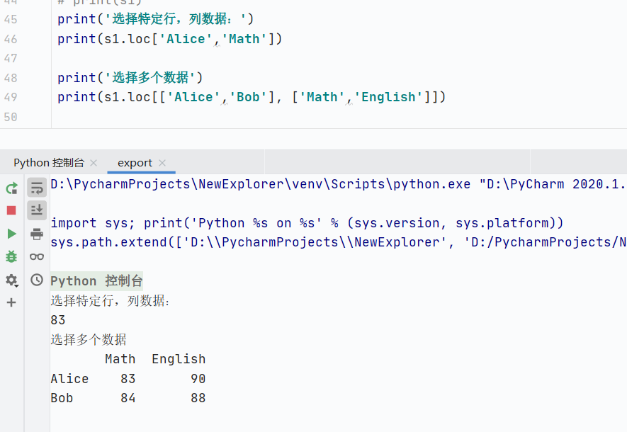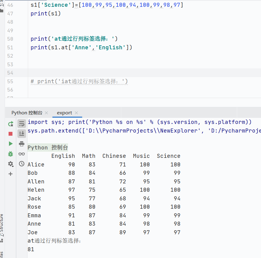 索引类型:通过行标签和列标签选择单个数据