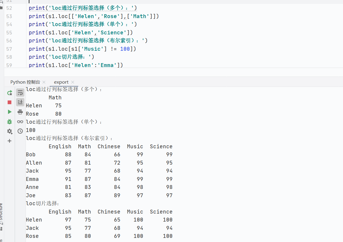 loc:显式索引切片,基于标签