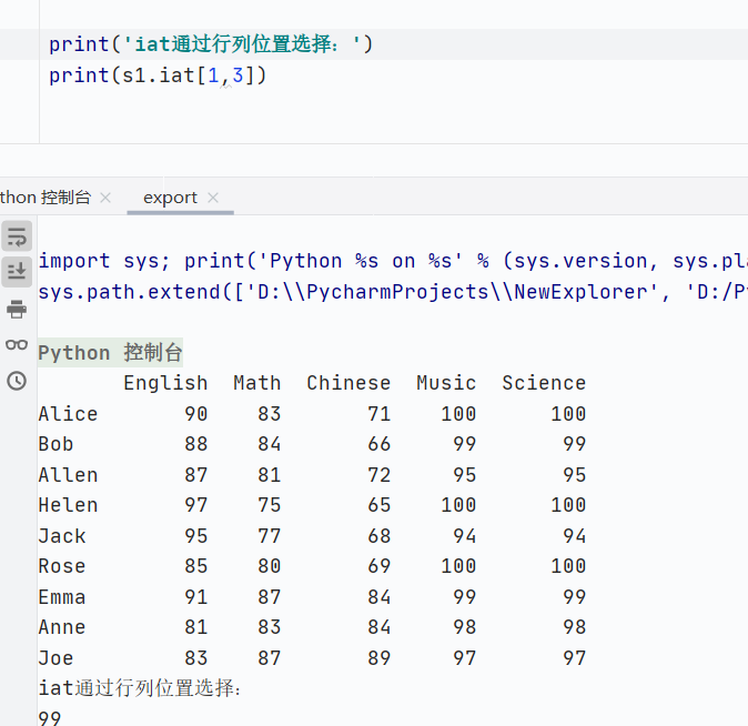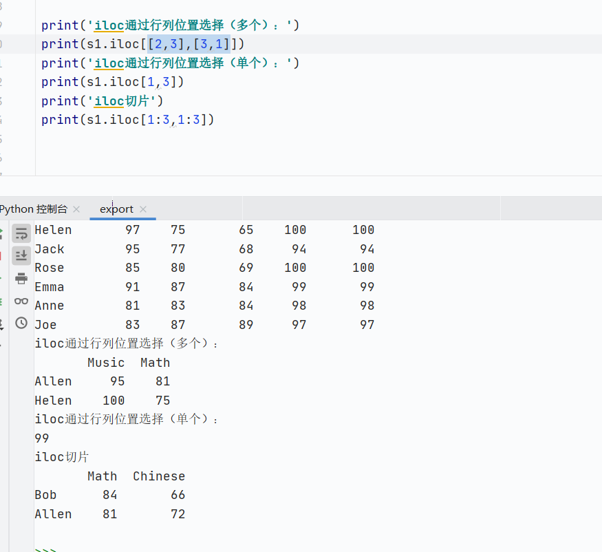 索引类型:通过行位置和列位置选择数据(从0开始)