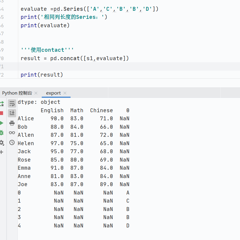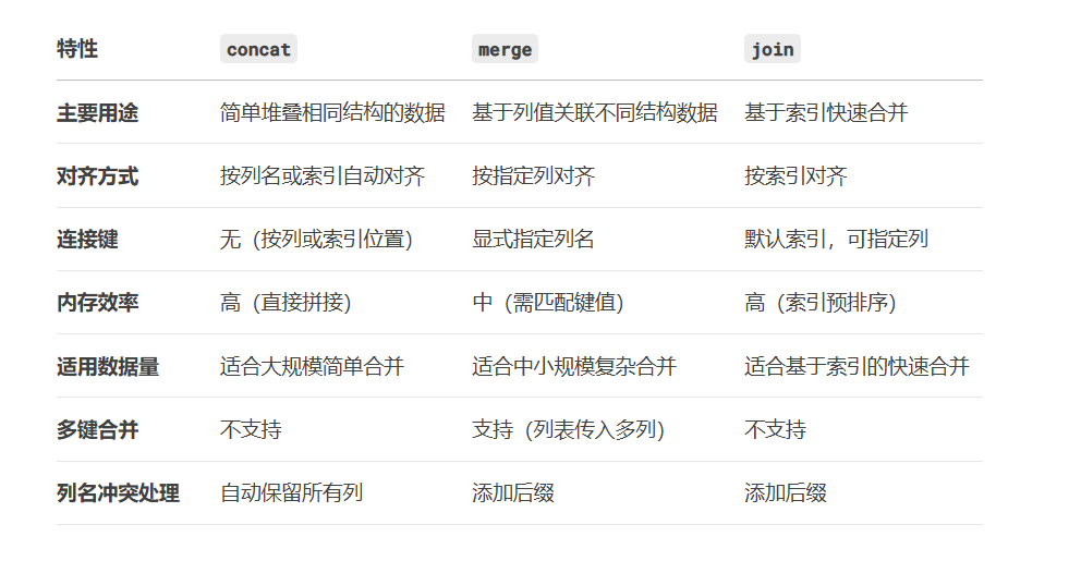 pd.concat:沿轴拼接数据,需要匹配索引,否则直接向下拼接