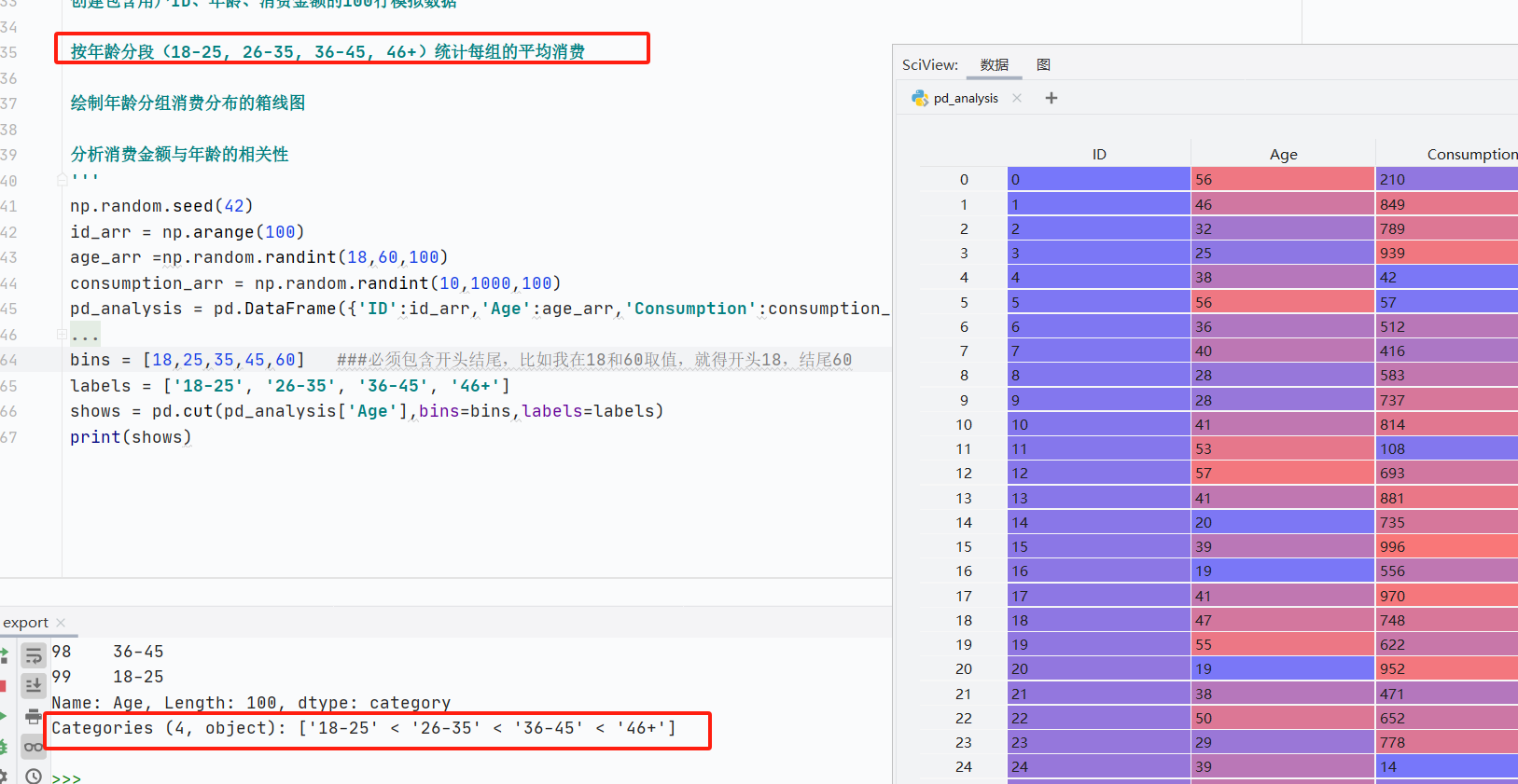 - pd.cut()生成的离散分组结果,常作为groupby的分组键值,组合使用