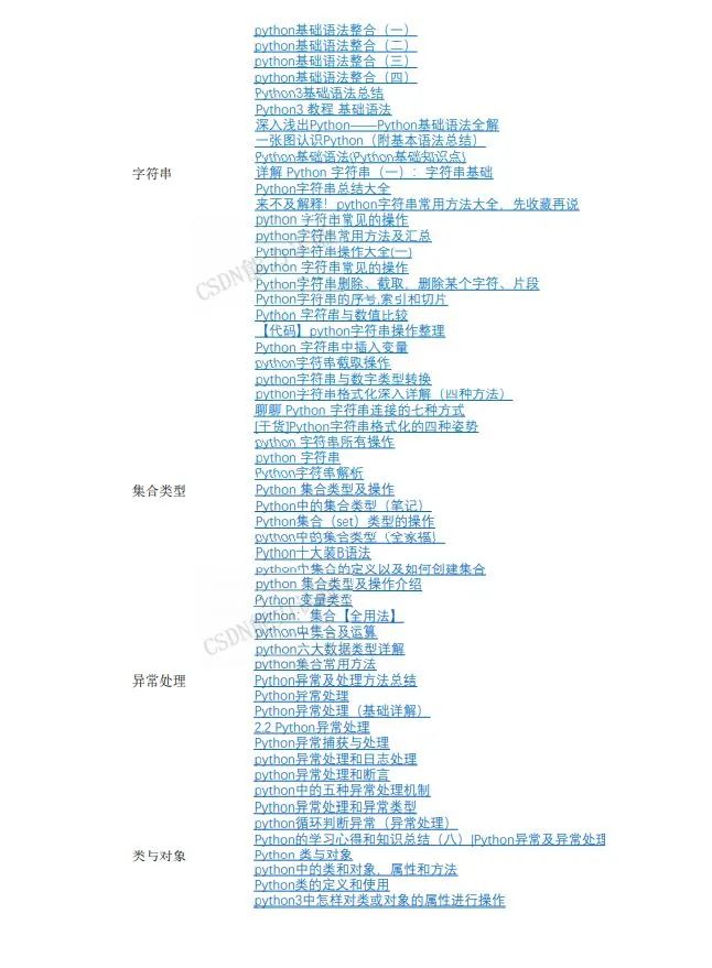 为了方便大家学习,我们总结了80篇点击破万,收藏过千的【Python技能】学习资料总结,包含语法基础、字符串、集合类型、异常处理、类与对象等知识点。无论你是刚刚接触Java、Python、前端的技术小白,还是已经有了一定基础的技术爱好者,在这里,你都可以找到你想要的资料。