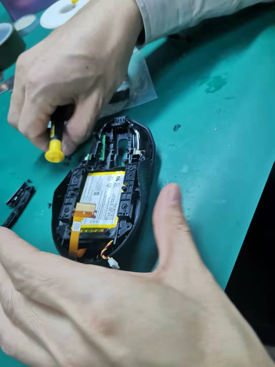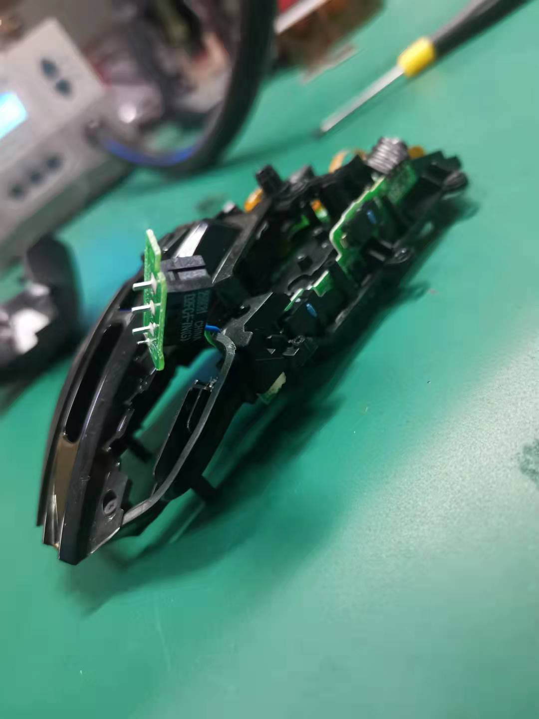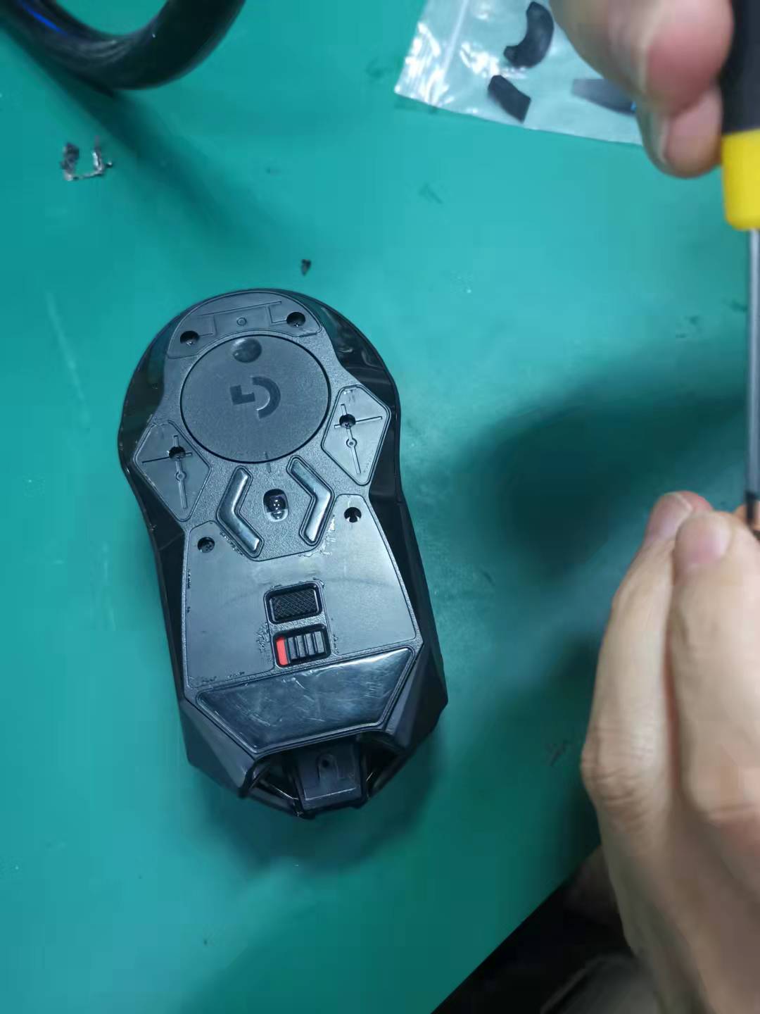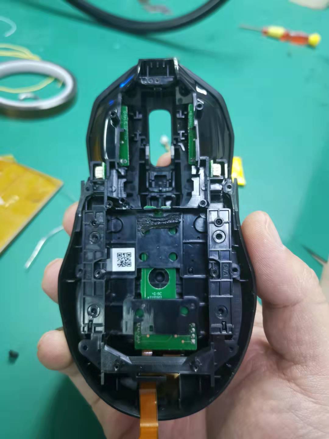 这个是鼠标底部,一般的鼠标微动都放置在底部,但是这个鼠标微动并不在下面。