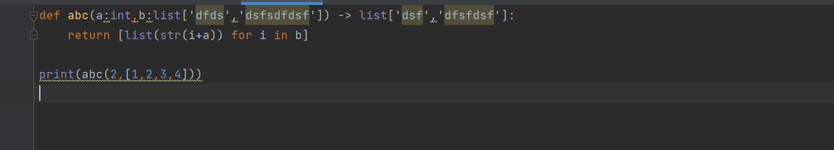 然后事实证明并没有,就是简单的解释语句(提示程序员这里的变量类型,因为python的变量是没没有任何声明的,所以一个变量名是可以存储任意的类型变量的,所以也起一个提示作用),不起其他作用