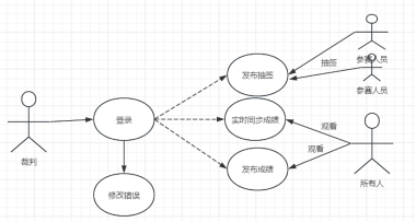 1、作为一名裁判,我希望能有一个软件系统,以便让我们抽签决定发球权和方位、比赛计时、实时输入、查看得分情况,在比赛时,可手机、大屏实时播放,避免造假。