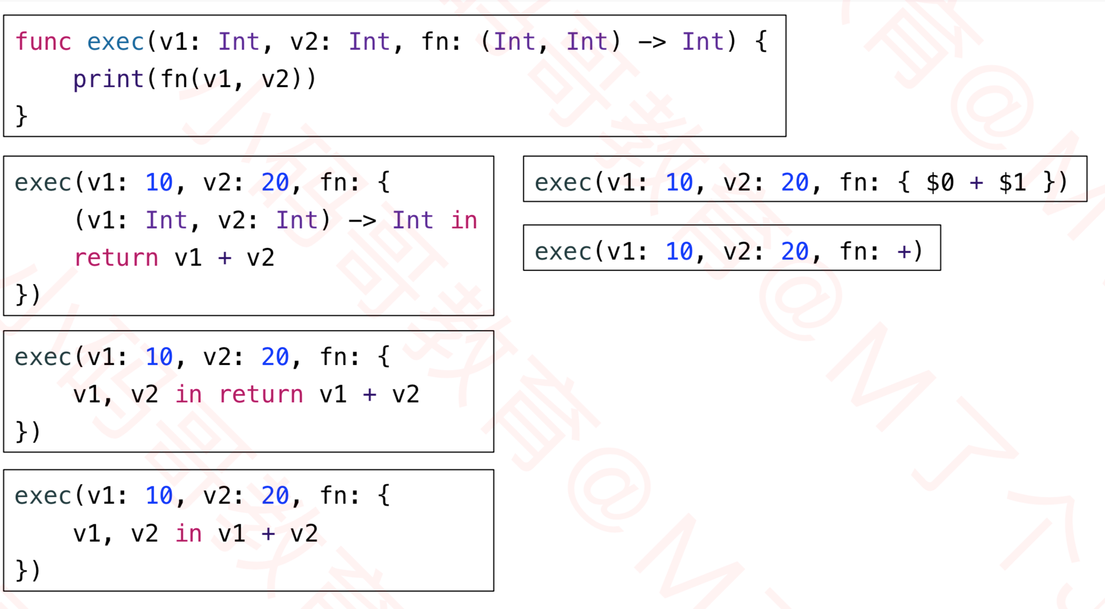 如果将一个很长的闭包表达式作为函数的最后一个实参,使用尾随闭包可以增强函数的可读性