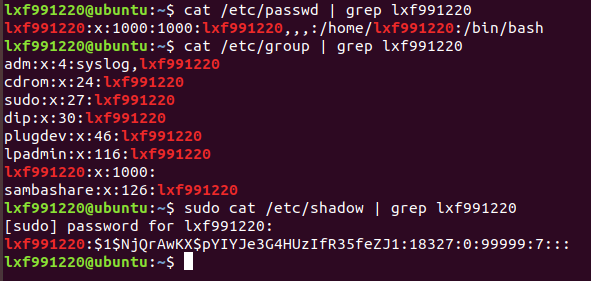 cat /etc/passwd | grep lxf991220 用cat命令查看用户lxf991220的文件信息