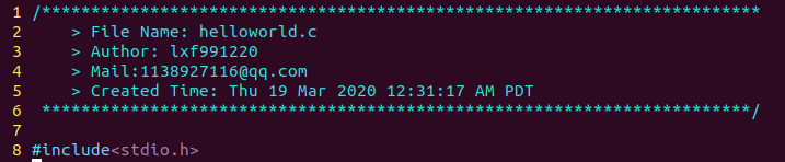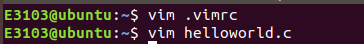 d)创建并打开一个以.c结尾的文件,如vim helloworld.c