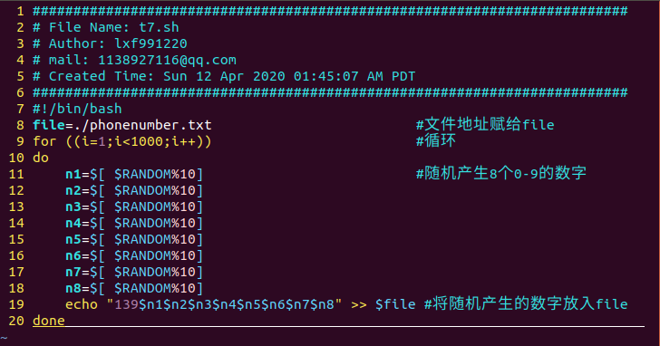 编写脚本,生成一个phonenumber.txt文件,文件内容为随机产生以139开头的手机号1000个,