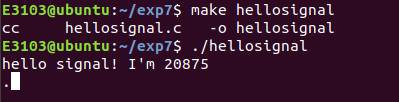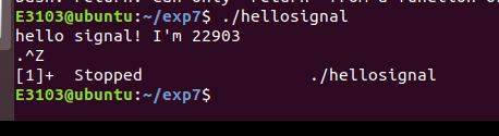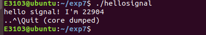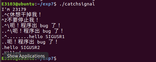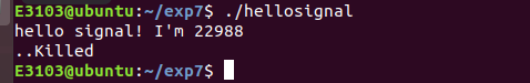 再返回之前运行 hellosignal 的终端观察进程接收到信号的反应: