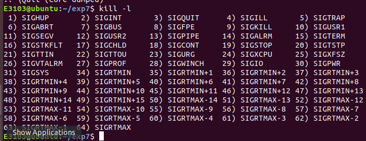 在终端通过输入 kill -l 来查看当前系统当中的信号列表: