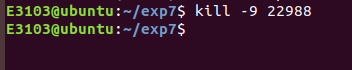 发送了信号值为9的信号给了进程22988,再切换到运行程序的终端来观察进程接收到信号后的反
