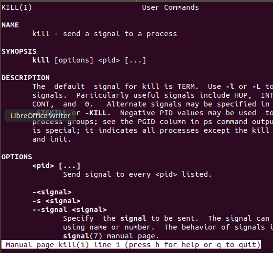 另开一个终端,通过 kill 命令向该进程发送信号: