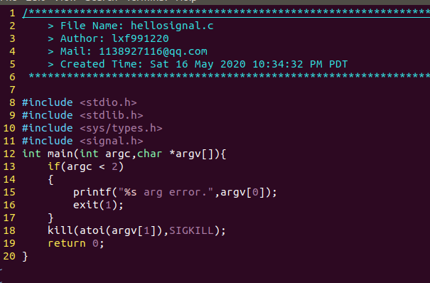 (3)编写一个简单的程序,该程序调用 kill() 函数向某个进程发送信号