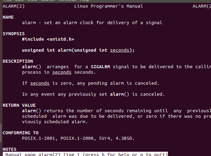 alarm() 函数在计时结束后会发生 SIGALRM 信号给当前进程,进程对 SIGALRM 信号的