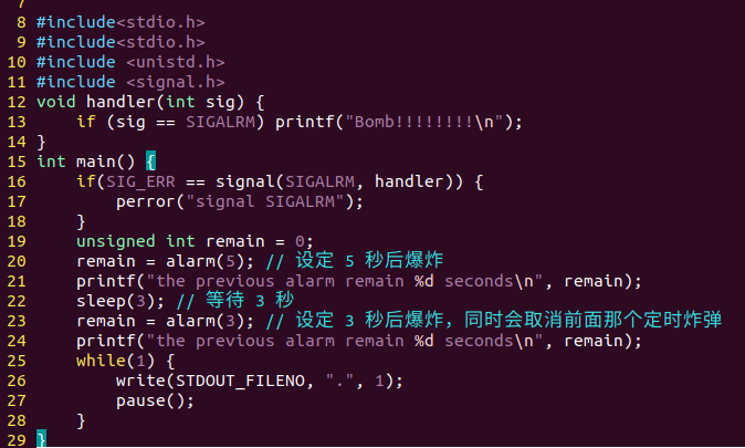 3、通过举例说明 alarm() 函数和 setitimer() 函数的使用。