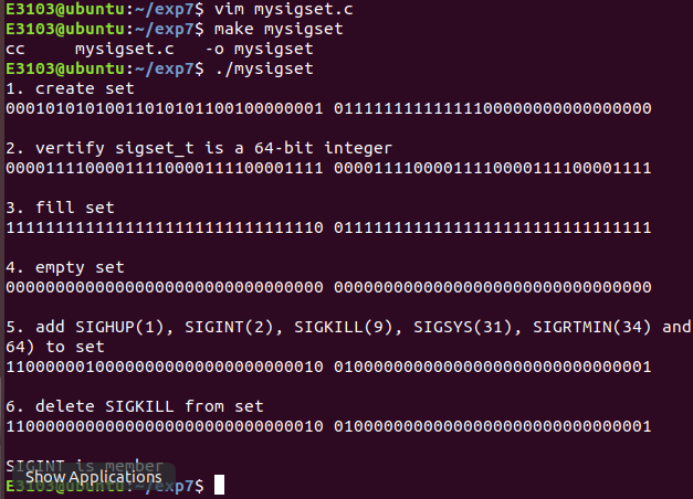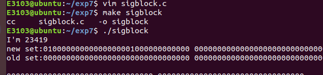 程序的功能是先把 SIGINT 、 SIGTSTP 加入到了进程阻塞信号集中去。接下来,每隔一秒打印一次未决信号集,第 10 次的时候,又把 SIGINT 信号从阻塞信号集中删除。