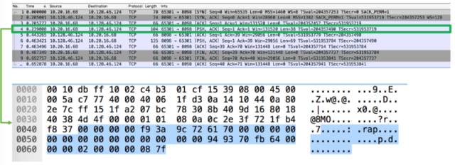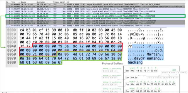 下面继续深入到 binary stream 级别观察,使用嗅探工具来看看 TCP 包。一般使用wireshark 或者 tcpdump。