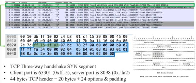 客户端的一次请求调用如下图所示,第一个包就是 TCP 三次握手的 SYN 包。