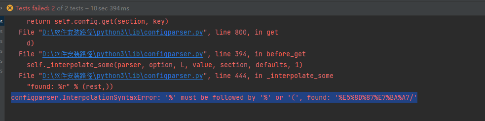 解决方法:conf=Configparser() 改为 conf=RawConfigparser()