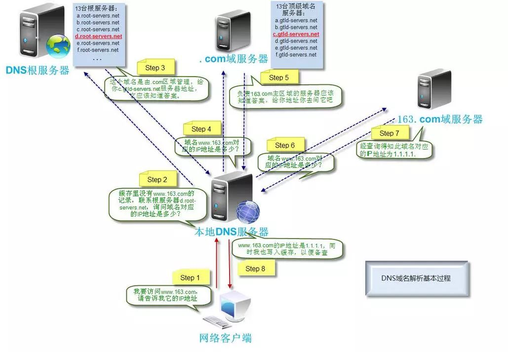 3、查询你输入的网址的DNS请求到达本地DNS服务器之后,本地DNS服务器会首先查询它的缓存记录,如果缓存中有此条记录,就可以直接返回结果,此过程是递归的方式进行查询。如果没有,本地DNS服务器还要向DNS根服务器进行查询。