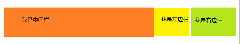 注意:我们给左边的盒子设置完margin-left:-100%;的时候他会和middle的左边重合,所以我们给他加了相对定位(相对自己原来的位置)。