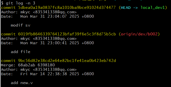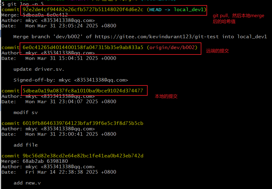 接下来本地对代码进行了修改,并提交到本地仓,此时看到本地仓多了一个哈希值5dbe: