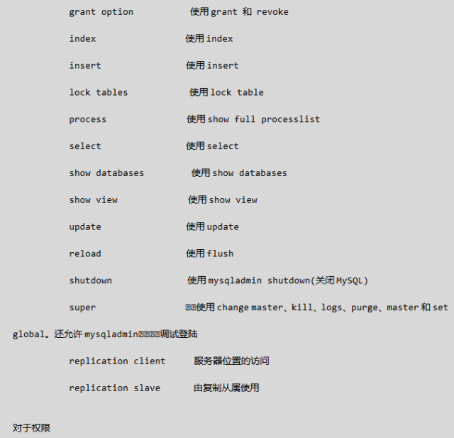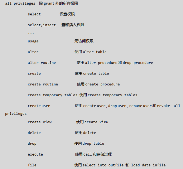 all privileges 除grant外的所有权限