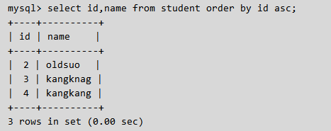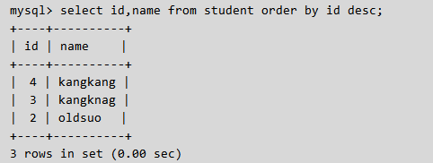 select * from tb1 order by nid desc;