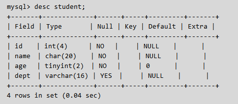 列名 类型 是否可以为空 默认值 自增 主键,