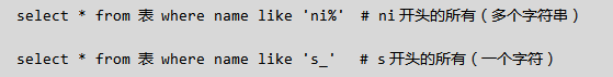 select * from tb1 where name like '%n';