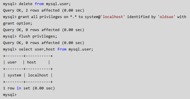 PS:用户权限相关数据保存在mysql数据库的user表中,所以也可以直接对其进行操作(不建议)