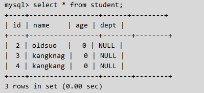 默认值,创建列时可以指定默认值,当插入数据时如果未主动设置,则自动添加默认值