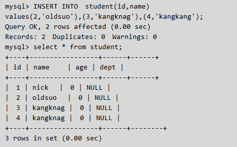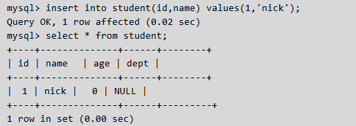 nid int not null defalut 2,