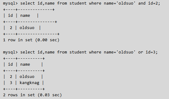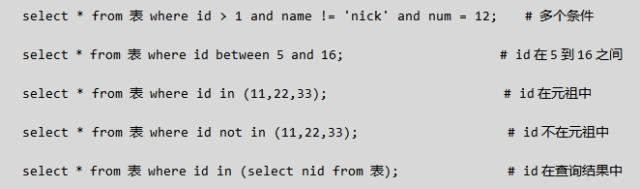 select * from tb1 where nid = 1 or email = '630571017@qq.com';