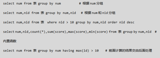 select * from tb1 where nid != 123