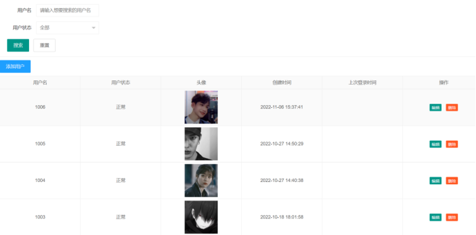 后台管理:用户注册,用户信息编辑,用户搜索
