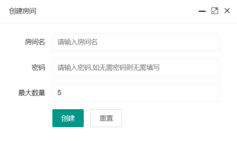 输入框:房间名,密码,最大数量 创建/重置按钮