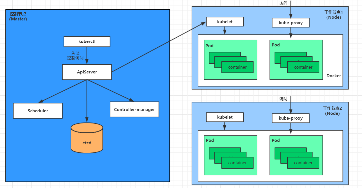 ApiServer :负责接收用户输入的命令,提供认证、授权、API注册和发现功能