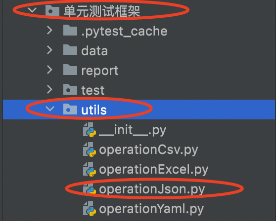 4、在当前工程下创建一个包utils,包内创建一个名为operatioJson的python文件