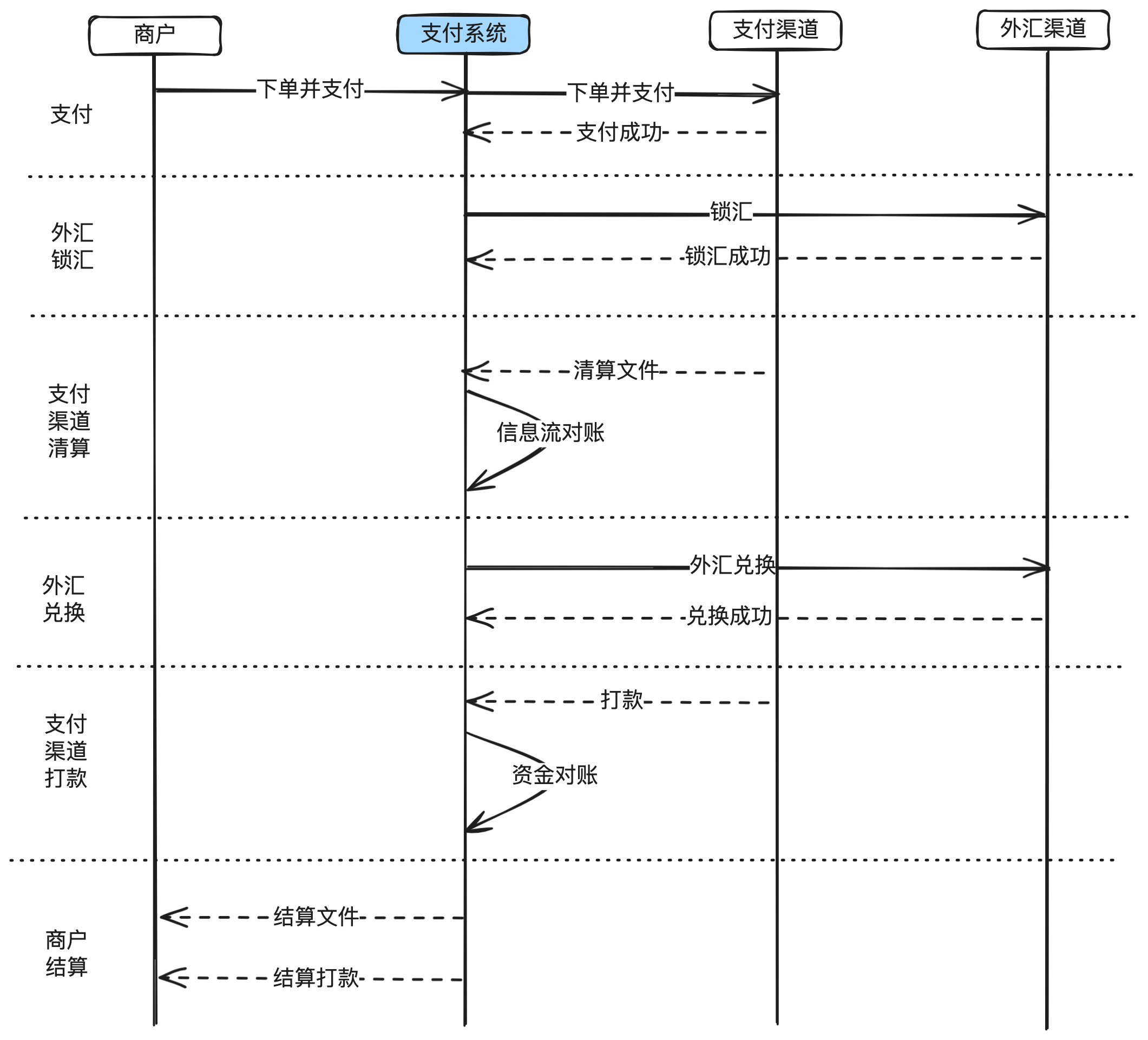 - 在银行清算后,支付平台再调用外部的外汇机构进行真正的换汇(TA)。
