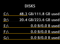 各位大神你们好,我有个纯文本ini,作者添加了C D盘,我想扩展显示E F G盘在桌面,请问怎样能获取到E F G盘符的空间占用状况