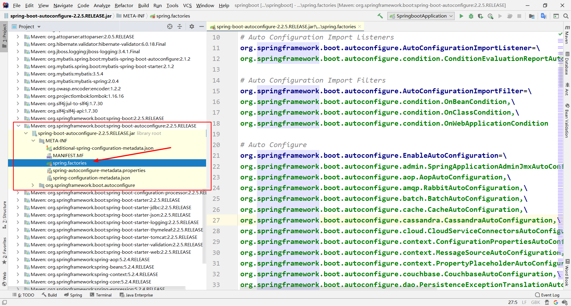 让我们打开 spring-boot-autoconfigure-2.2.5.RELEASE.jar 下的 META-INF/spring.factories