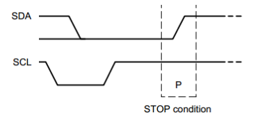 I2C通讯的停止位,和起始位功能相反,SCL高电平,SDA出现上升沿就是停止位