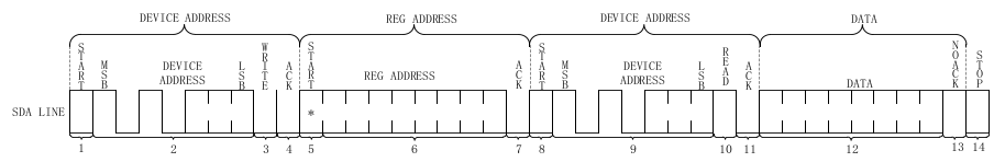 - 1~7是主机发Start信号,指定设备地址以及读写位(这里必须是1,因为要写寄存器地址),等待ACK响应后重新发送Start信号,发送要读取到寄存器地址,等待ACK响应。