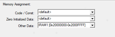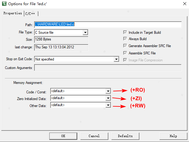 打开对应文件的设置项,其中有Memory Assignment项,三个设置分别对应RO ZI RW数据放在内存哪个位置。