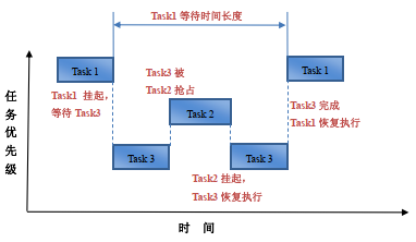 - 任务 Task1 运行的过程需要调用函数 printf,发现任务 Task3 正在调用,任务 Task1 会被挂起,等待 Task3 释放函数 printf。