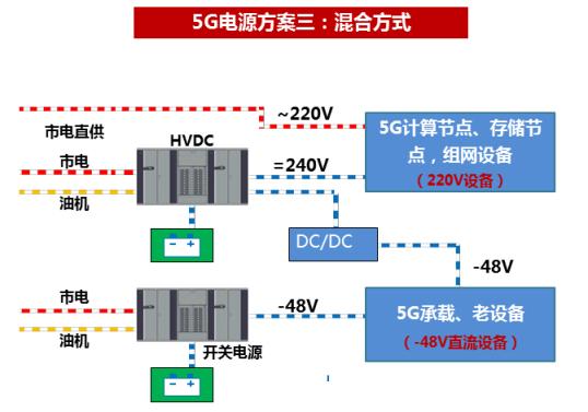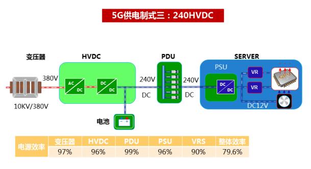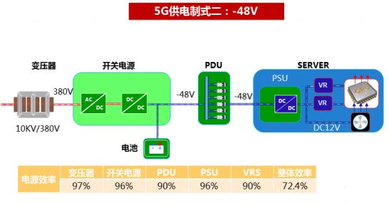 5G 建设规模化,中后期可以采用高压直流,提升供电电压,降低线路损耗和转换损耗,从而提升整体系统效率,降低能耗